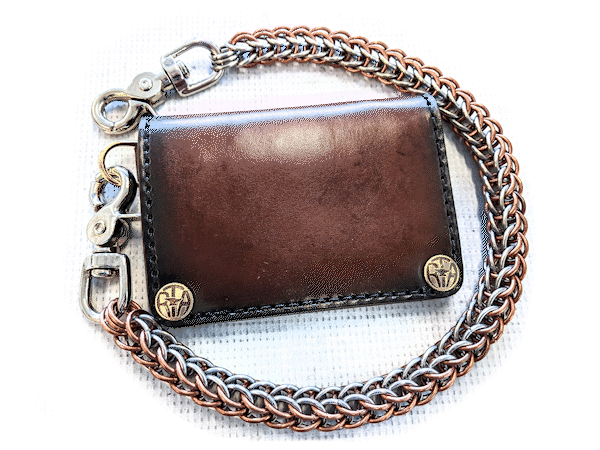 This style is the most popular design among anvil customers. 2 big bill sections, 4 card slots, a solid brass machined chain attachment and plenty of surface area to show off your favorite leather... what more could you ask for really?