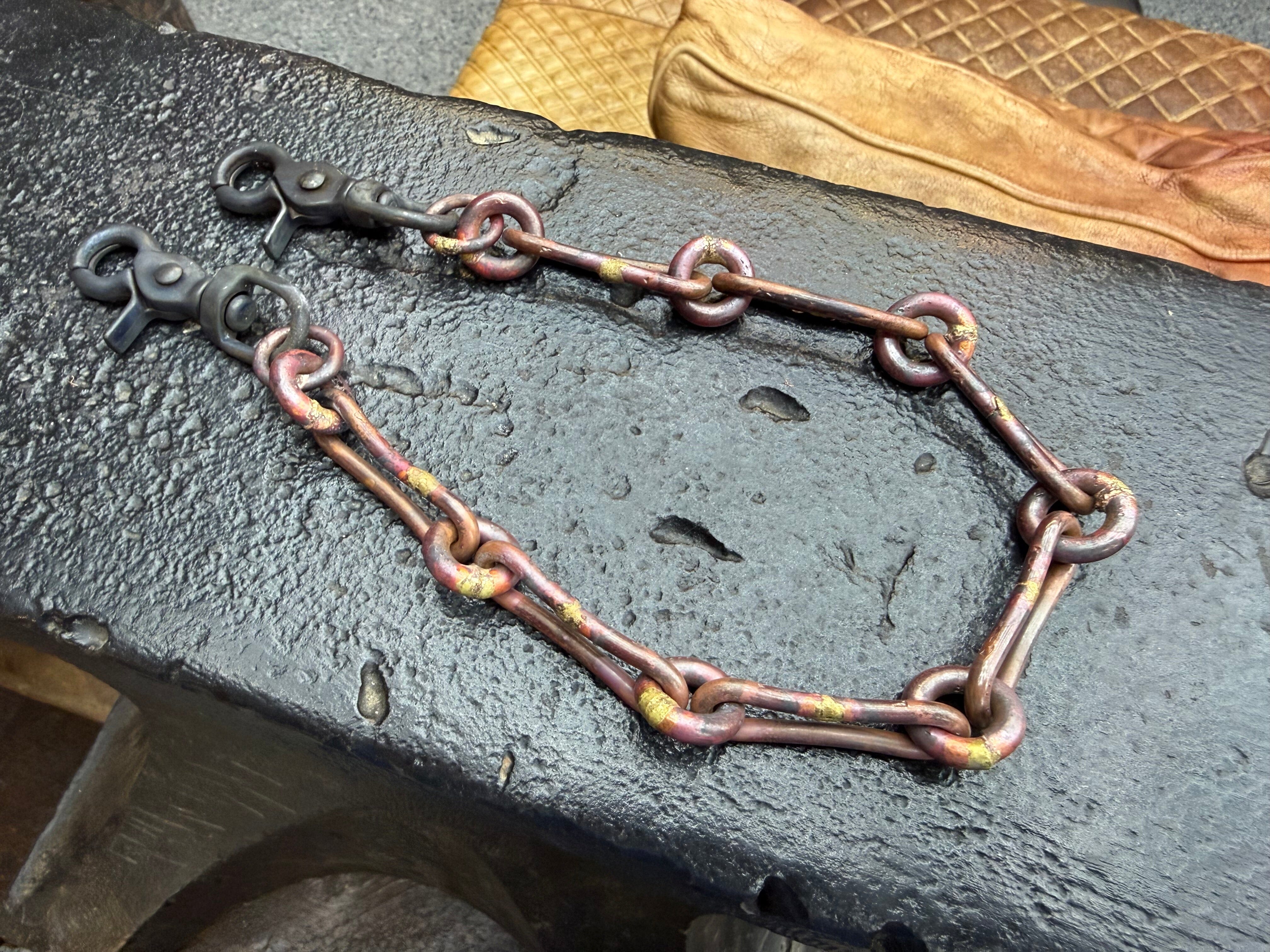 Disclaimer: I Will not be held responsible for how badass you’re gonna look wearing this epic copper welded chain 😎 But more so, copper is a soft metal. Through some ‘work hardening’ the Hook is stout, but under heavy force, you can still damage this chain. Please take good care of your RTAnvil goods & your RTAnvil goods will take care of you.