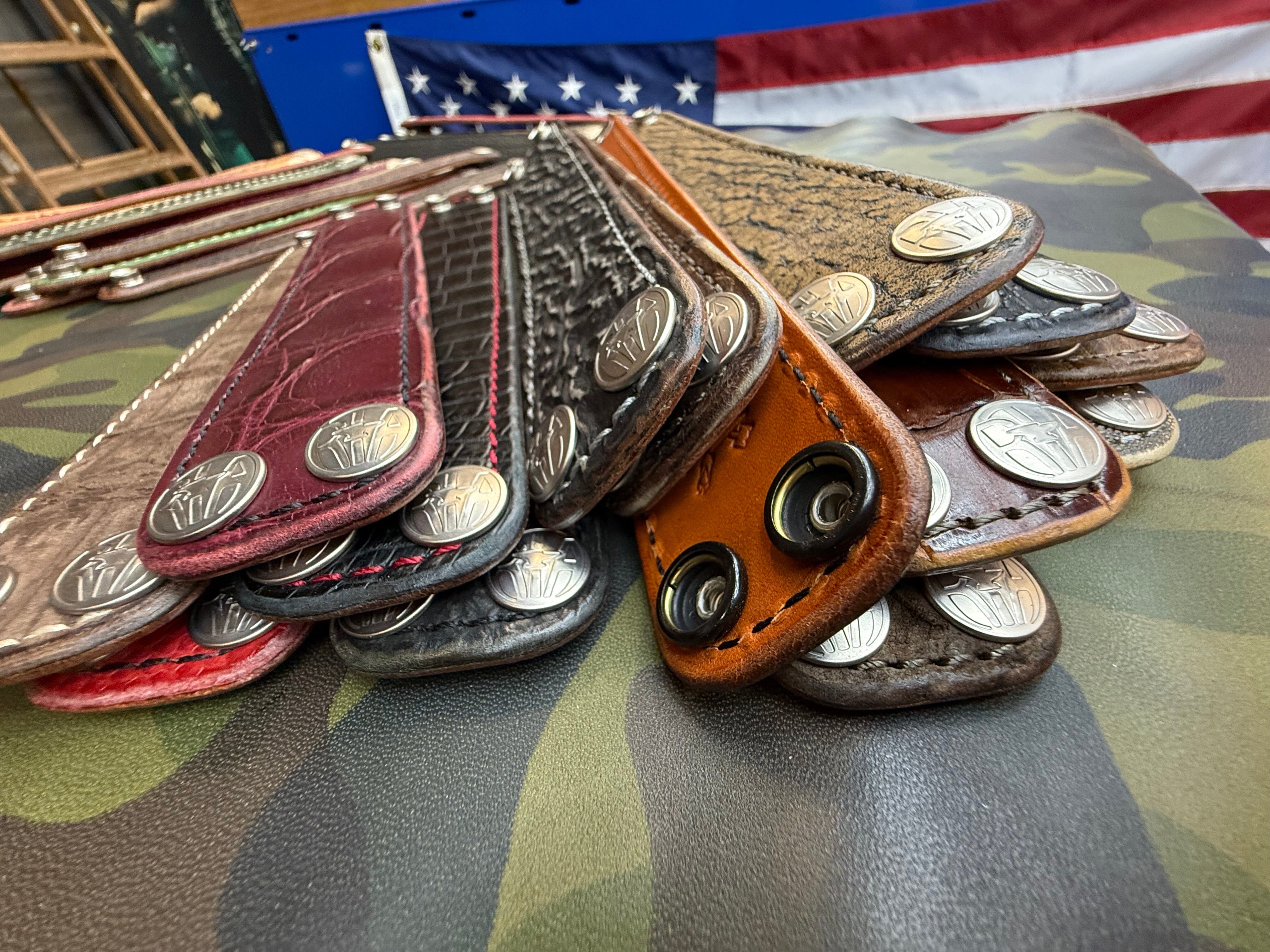 I make ALL my cuffs from exotic hides leftover from Wallet Production — Therefore, Only this ONE QUANTITY is available (sizing is measured between the Snap Centers >> This means your new Anvil Cuff is usually ONE-OFF and unique in its own right!