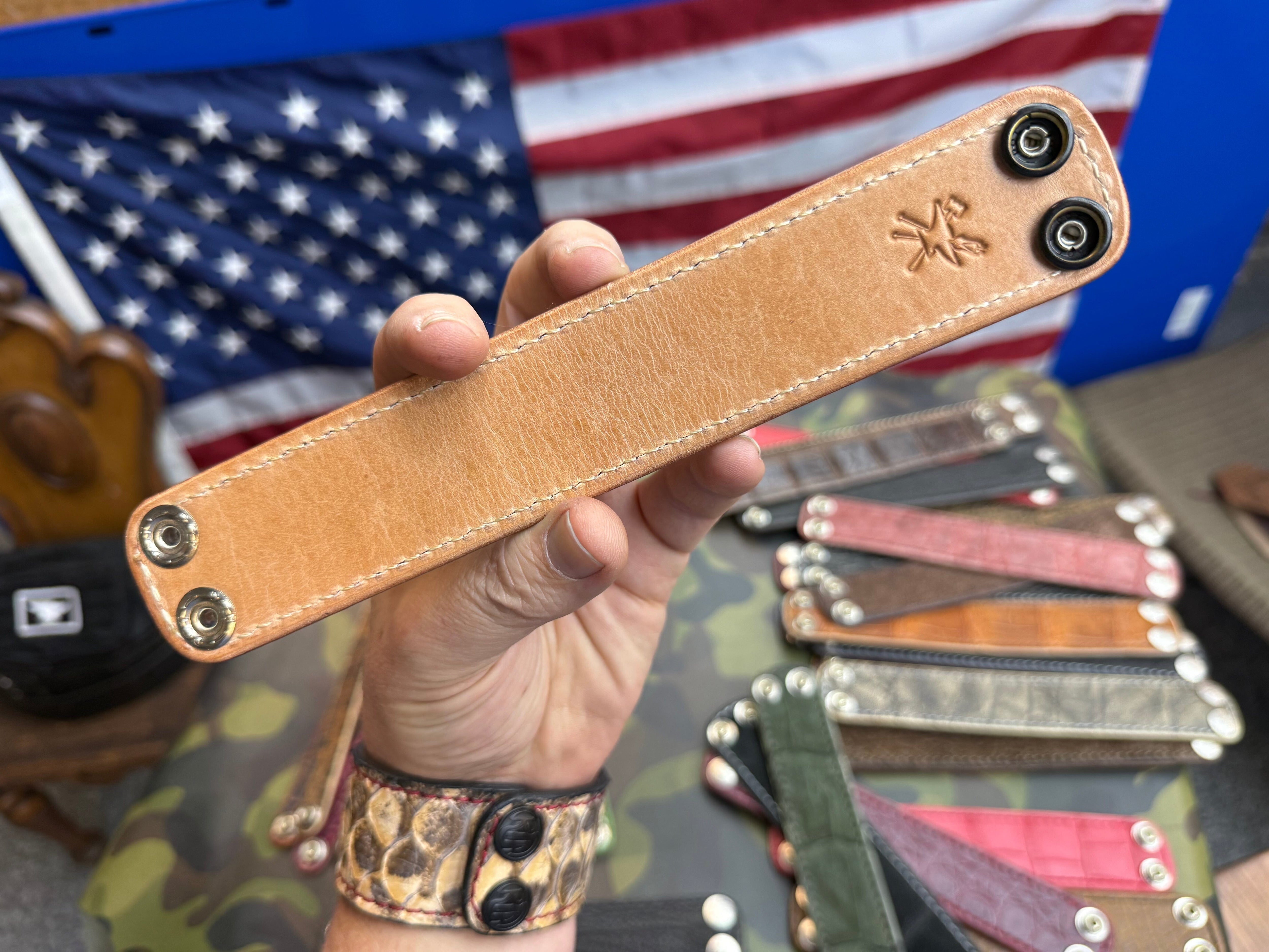 I make ALL my cuffs from exotic hides leftover from Wallet Production — Therefore, Only this ONE QUANTITY is available (sizing is measured between the Snap Centers >> This means your new Anvil Cuff is usually ONE-OFF and unique in its own right!