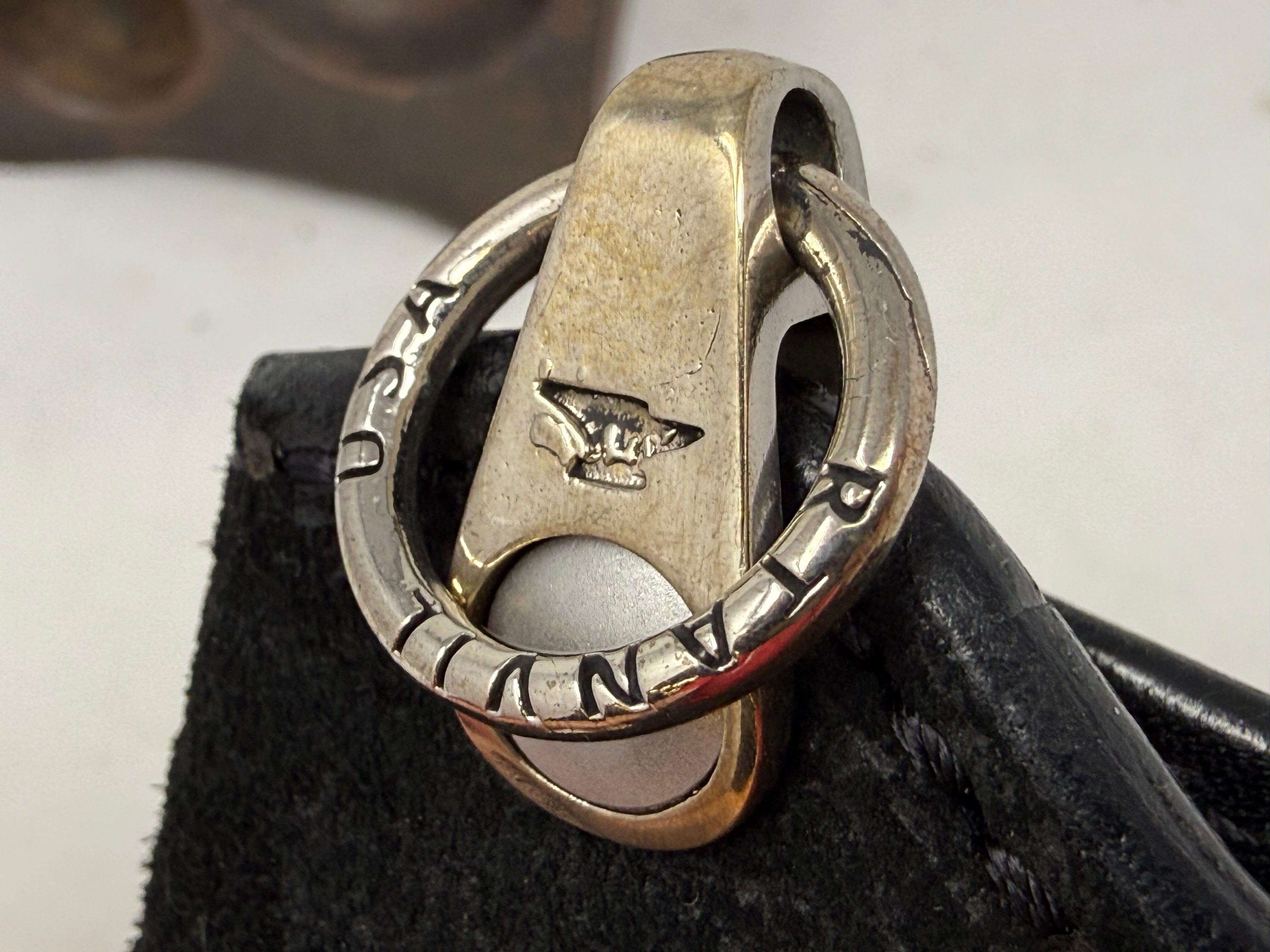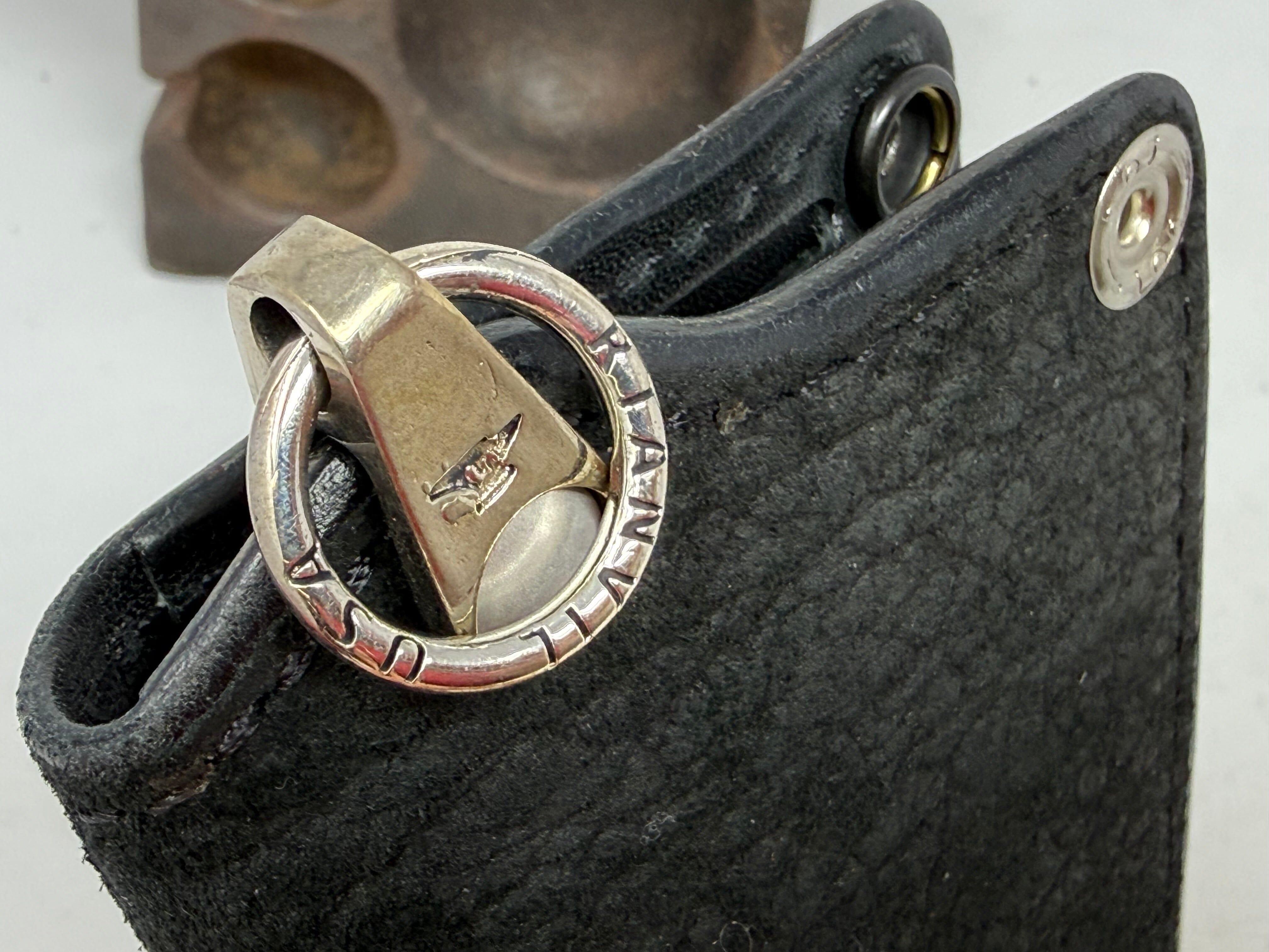 Hand cast brass Anvil Chain Attachment (registered trademark) that offers a 360 degree rotation where the wallet chain connects to the wallet. Swivels side to side & the solid welded ring allows for full rotation. Marked “RTANVIL USA”