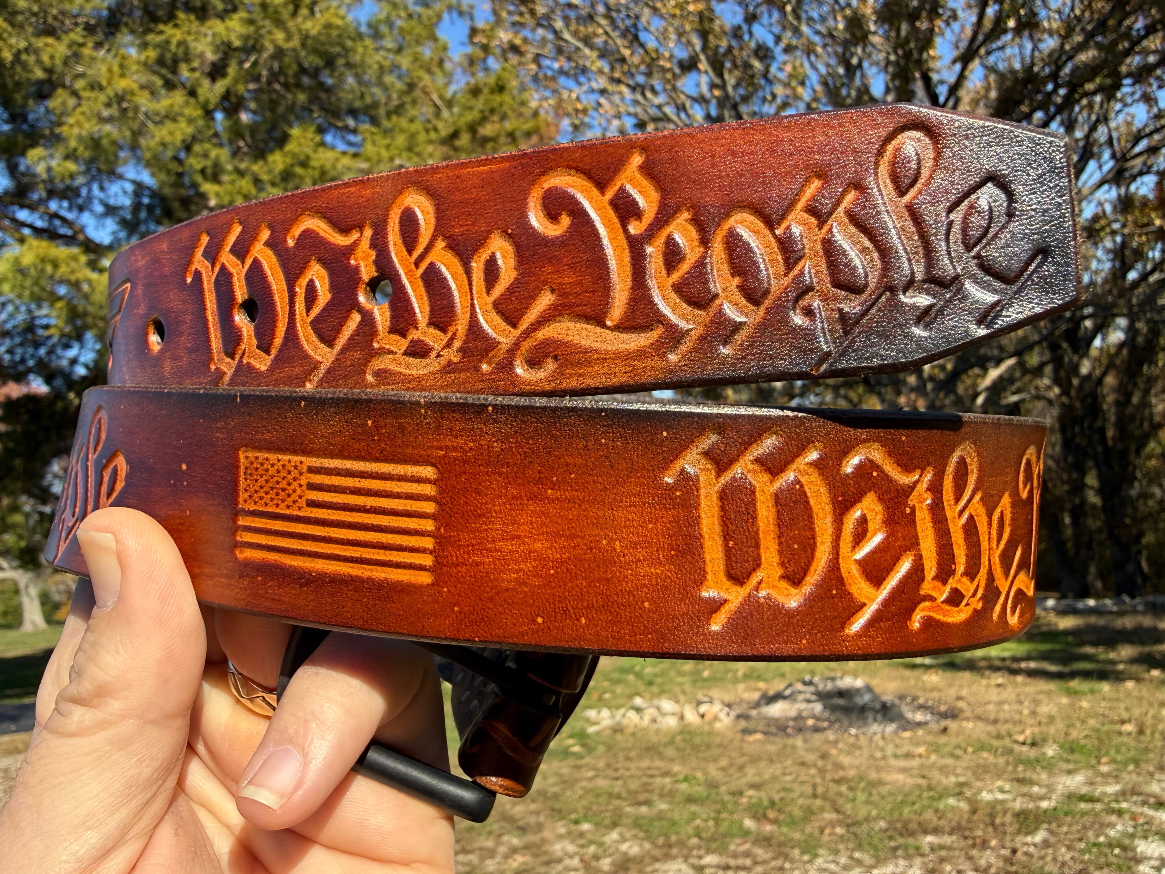 Show your Patriotic side for America with this awesome leather belt featuring our "We the People" Artwork!