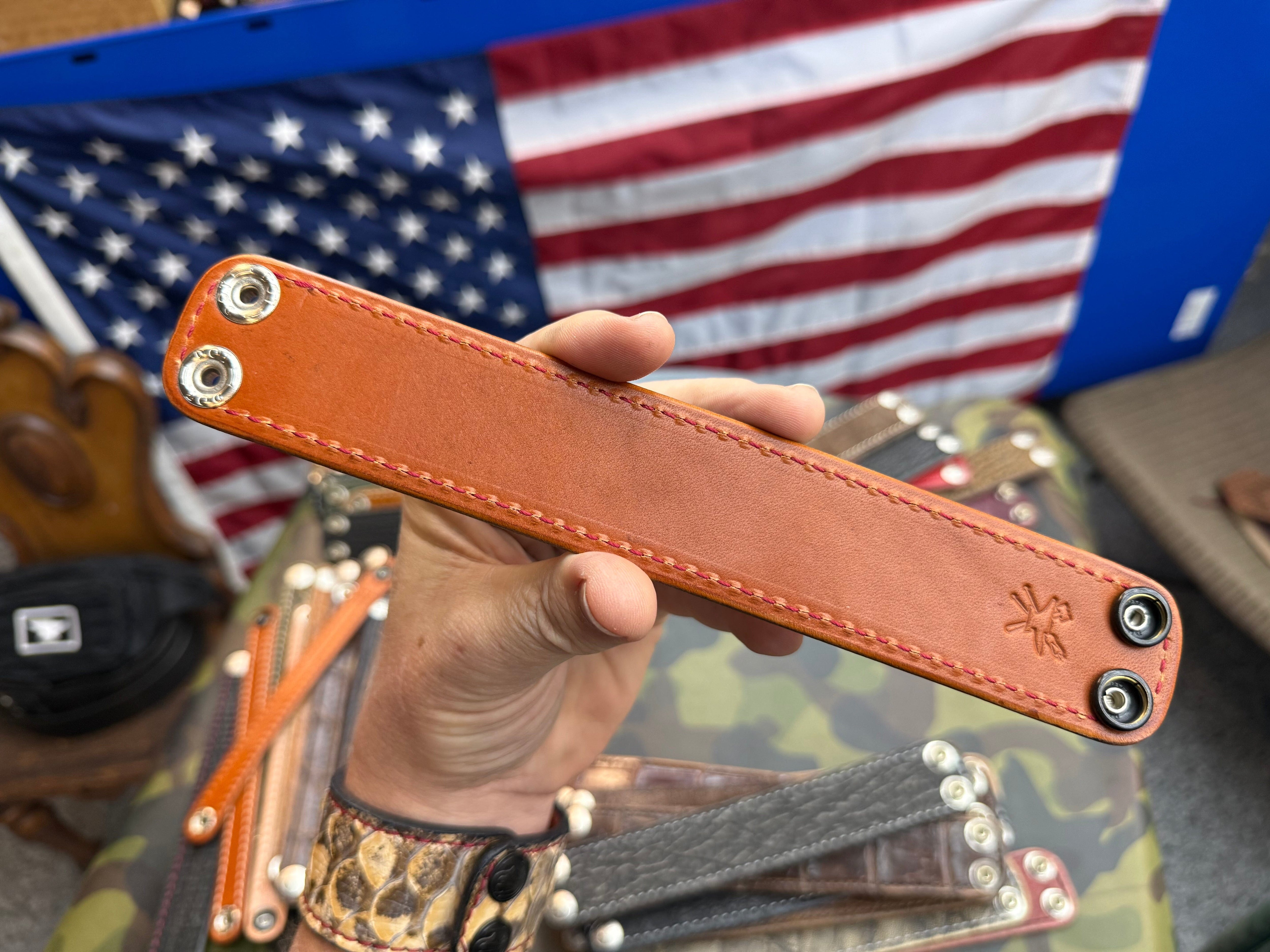 I make ALL my cuffs from exotic hides leftover from Wallet Production — Therefore, Only this ONE QUANTITY is available (sizing is measured between the Snap Centers >> This means your new Anvil Cuff is usually ONE-OFF and unique in its own right!